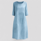 Experience elegance and comfort with this summer dress. It features a simple silhouette and a lightly embroidered texture, perfect for warm summer days. With elbow-length sleeves and a round neckline, it is ideal for any occasion, from the beach to the city.