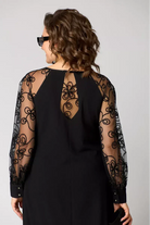 This elegant black dress combines simplicity with refined details, making it a perfect choice for women who appreciate timeless style.