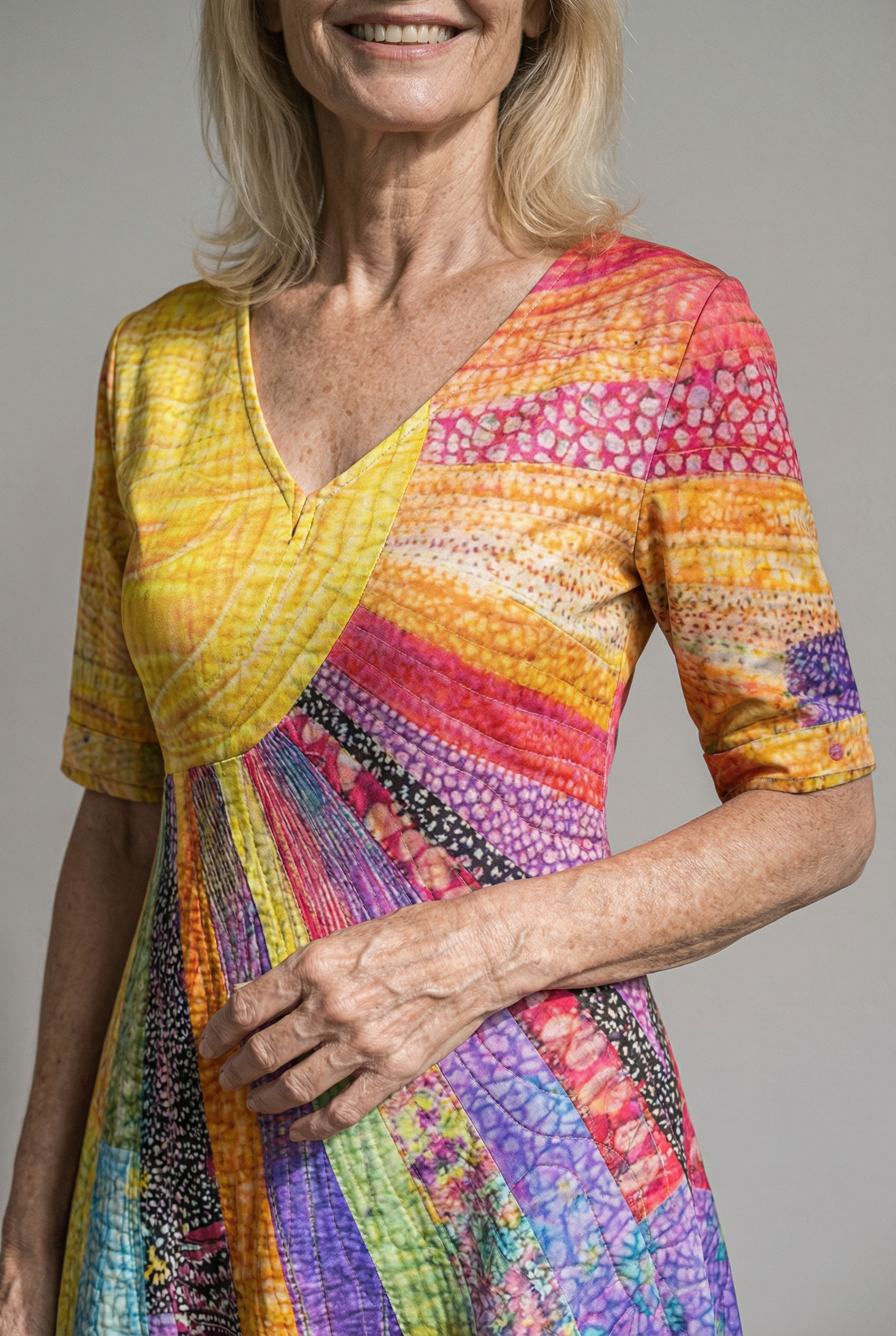 Thoughtful everyday details – V-neckline, long sleeves, and functional side pockets