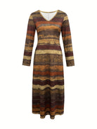 This dress blends vintage charm with modern elegance, making it a perfect choice for winter occasions. Featuring a flattering V-neck and refined vertical stripes, this long-sleeve maxi dress transitions effortlessly from everyday wear to special events.