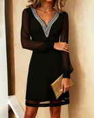 Figure-Flattering V-Neck Dress with Chic Insert Panels