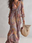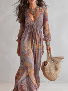 Chic Vintage Paisley Print V-Neck Dress with Tie-Waist
