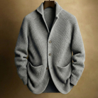 The shawl-style collar rests comfortably around the neck and frames a shirt naturally. It adds warmth without pressure and feels comfortable for extended wear.