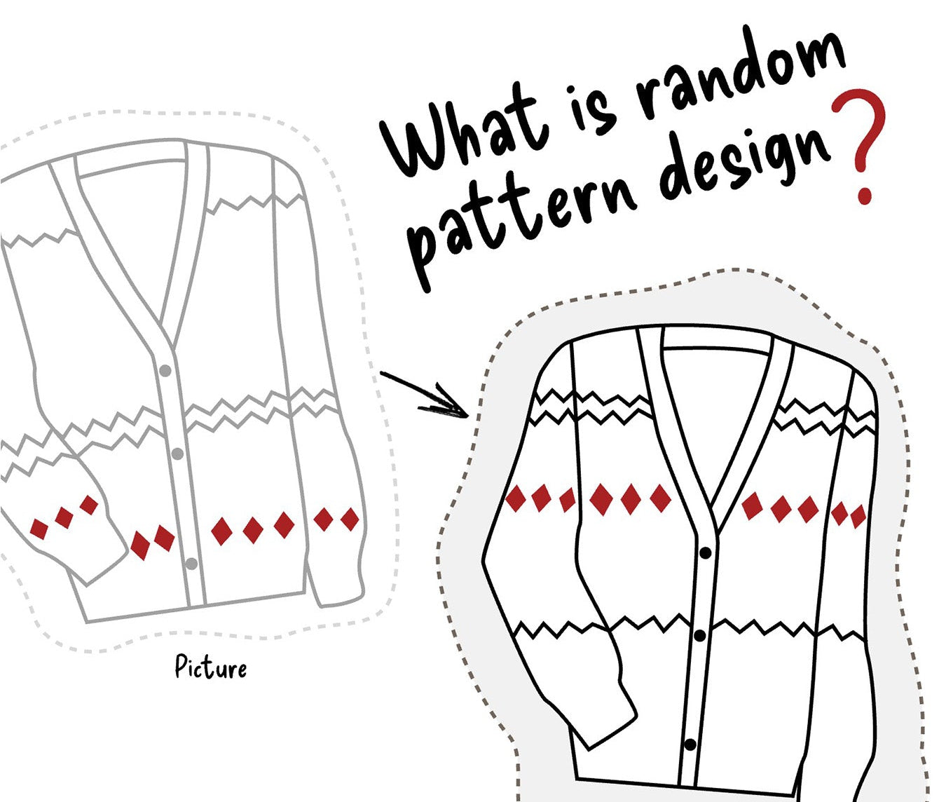 This item is random pattern design and each item is unique. So the pattern position of the item you received maybe slightly different from the picture.