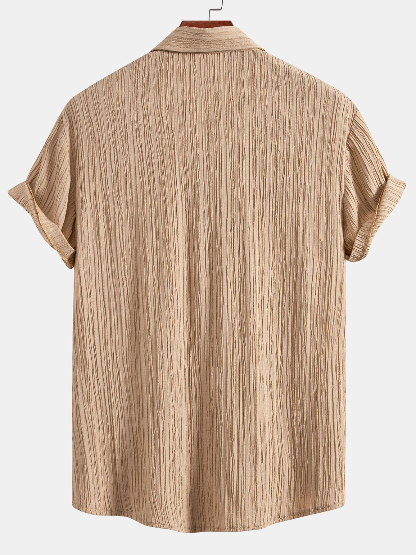 Add a touch of effortless style to your wardrobe with this wrinkled textured button-up shirt. Designed with a relaxed fit and a naturally crinkled texture, this shirt offers a casual yet sophisticated look. The lightweight and breathable fabric ensures all-day comfort, making it perfect for both casual outings and semi-formal occasions.