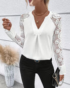 Chic V-Neck Ruffled Blouse with Long Sleeves