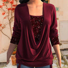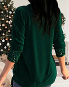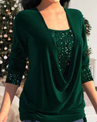 The 3/4 sleeves are finished with sequin details, adding an extra touch of sophistication. Thanks to its soft and stretchy fabric, the garment is very comfortable and flattering. Ideal for a dinner, a special occasion, or a stylish night out.