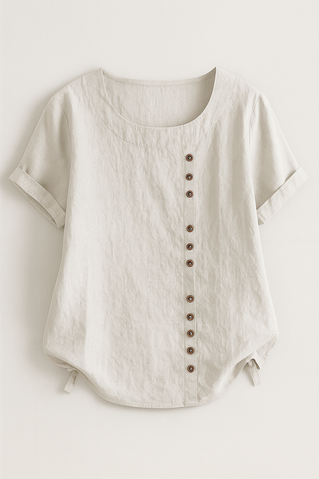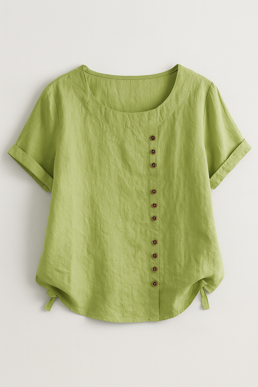 Women's Linen Button-Front Blouse - Lightweight, Breathable and Elegant