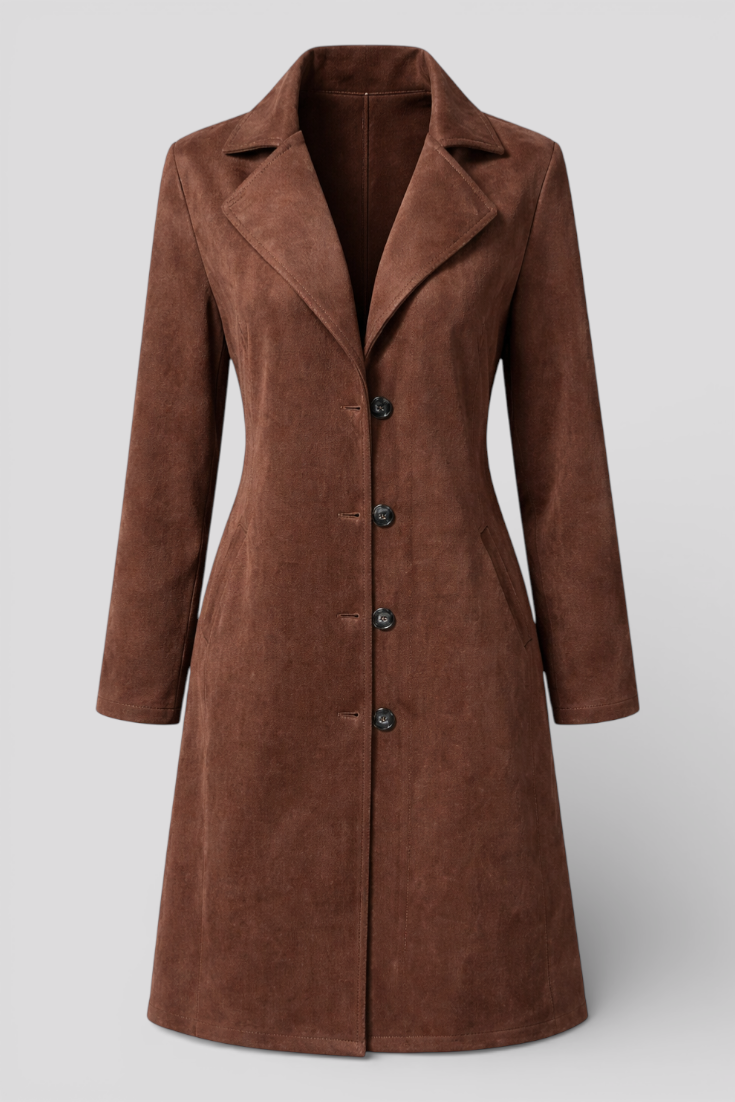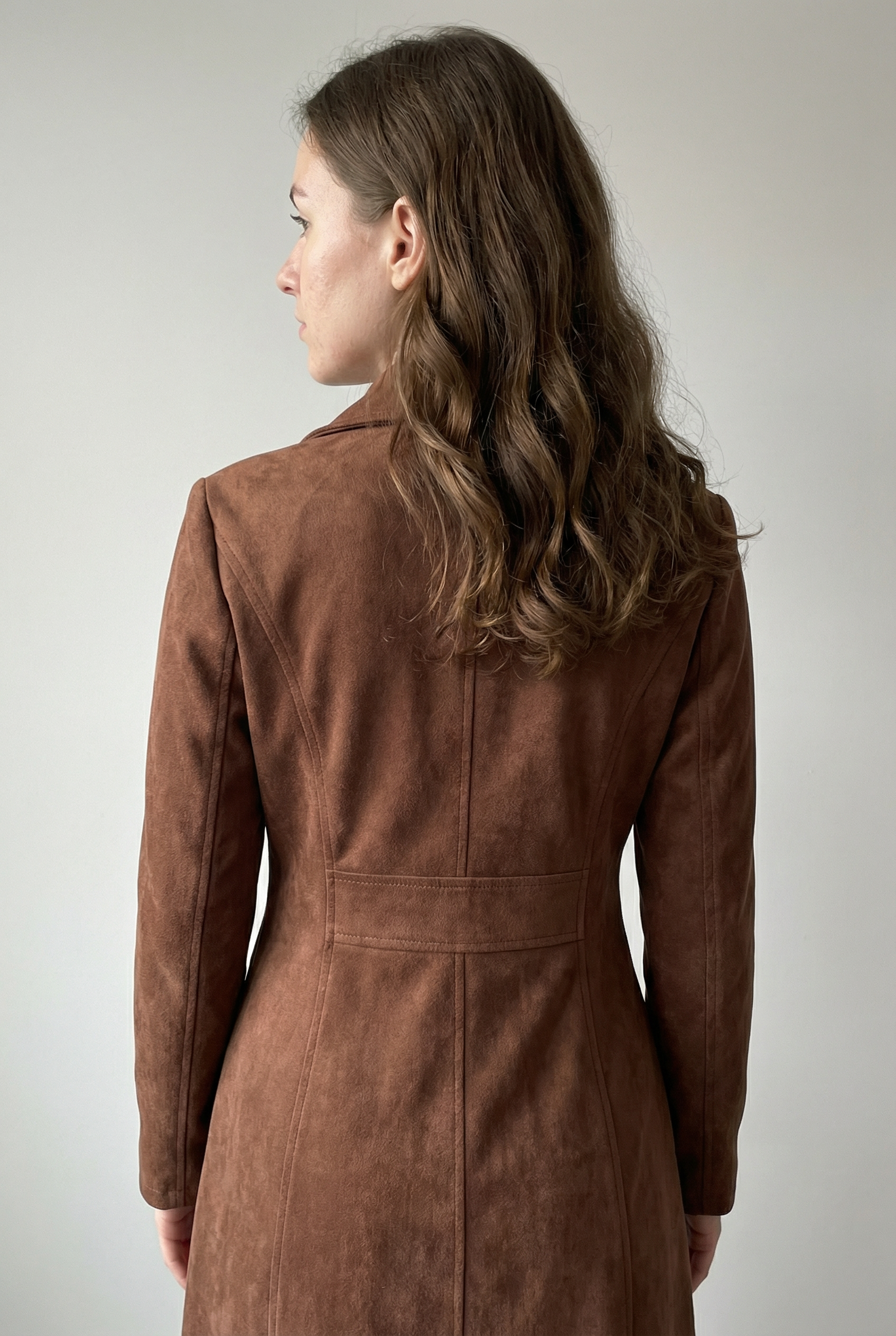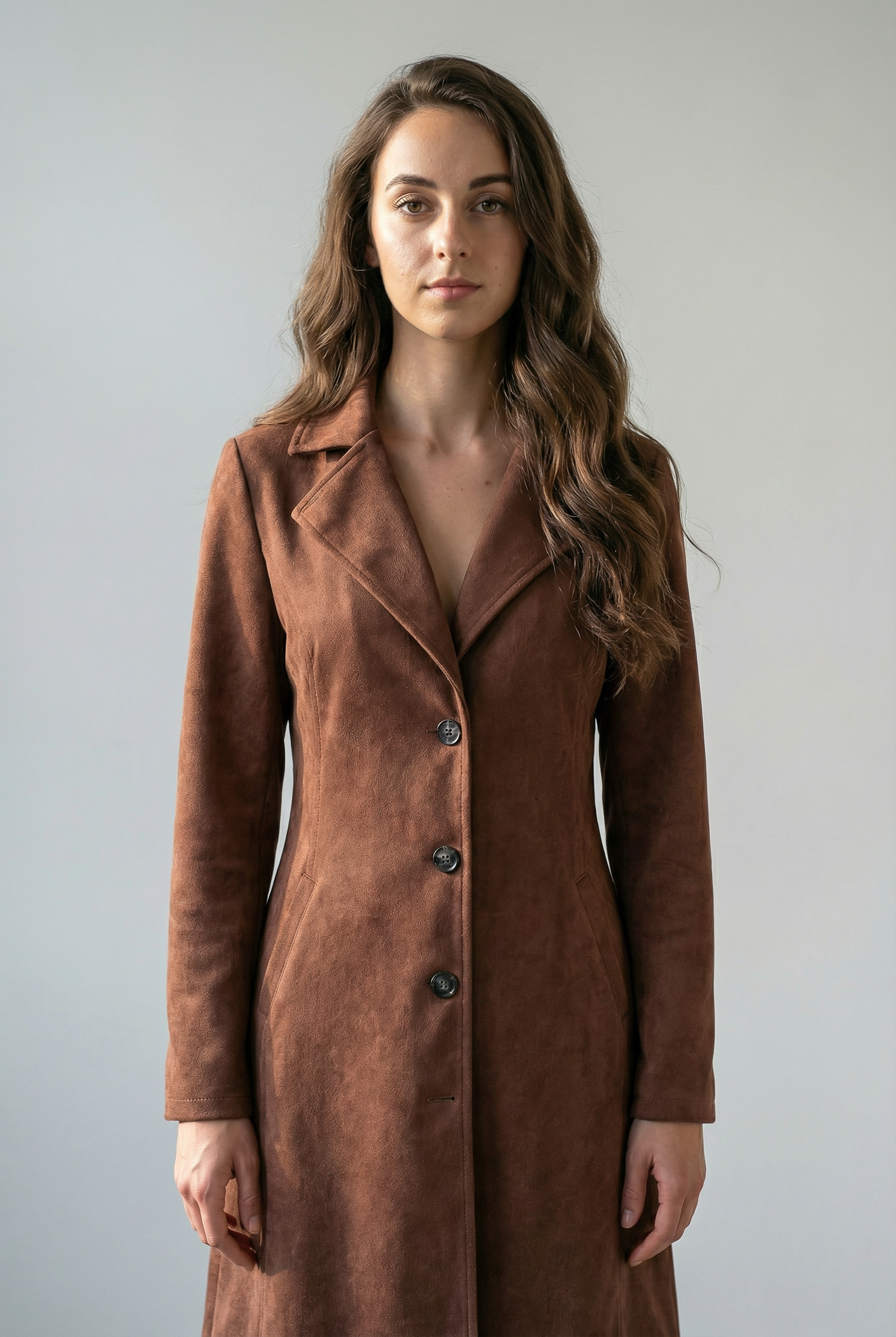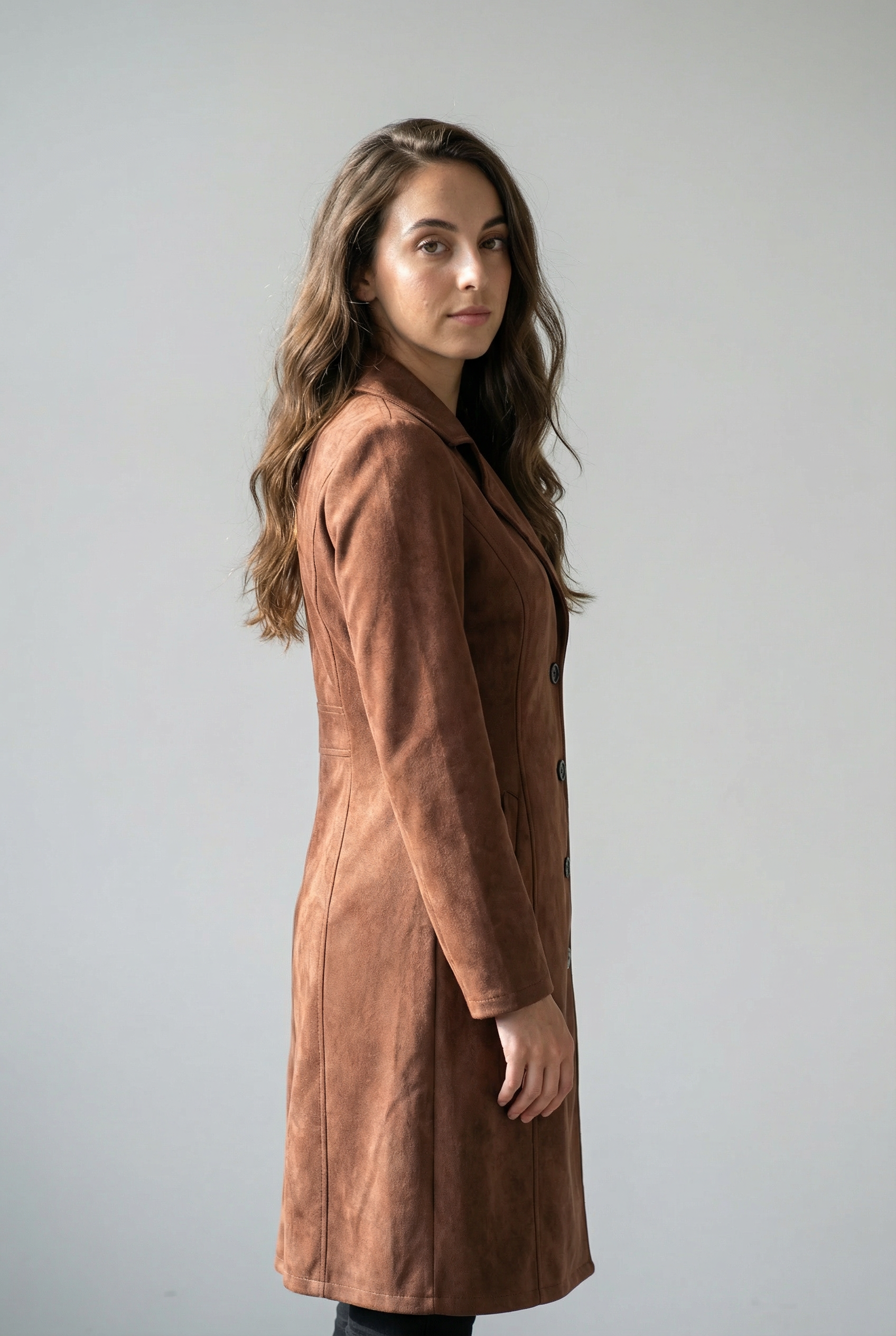Our Vintage Suede Trench Coat combines classic trench design with soft suede for timeless elegance. Perfect for layering, it adds sophistication to any outfit, making it a stylish staple for cooler seasons.