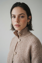 Crafted from a rich wool-blend fabric, combines structure and comfort most gracefully. Its sculpted collar, oversized gold buttons, and cropped silhouette create an instantly polished look that transitions effortlessly from daytime errands to evening outings.