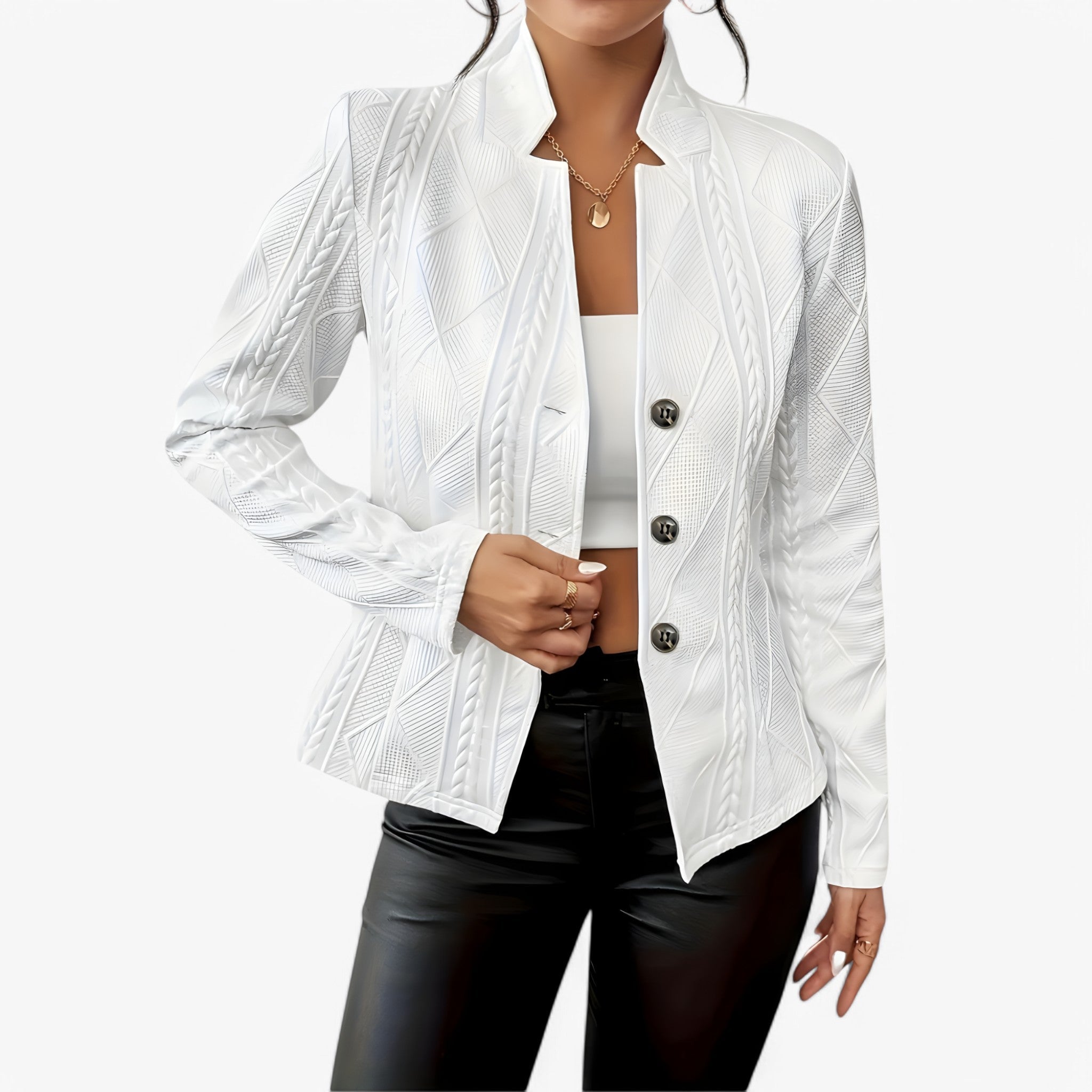 Reina is designed with a form-fitted silhouette that enhances your curves in a flattering way. Whether you wear it over a dress or with a shirt and trousers, it creates an elegant look.