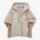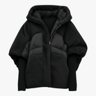 This oversized women’s coat is the ideal choice for facing dropping temperatures. Featuring a modern patchwork design and a practical hood, it offers warmth and style as you transition from autumn to winter.