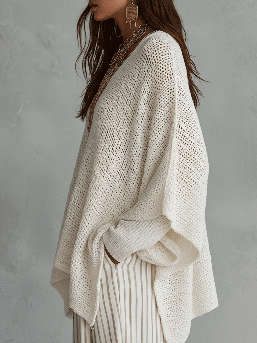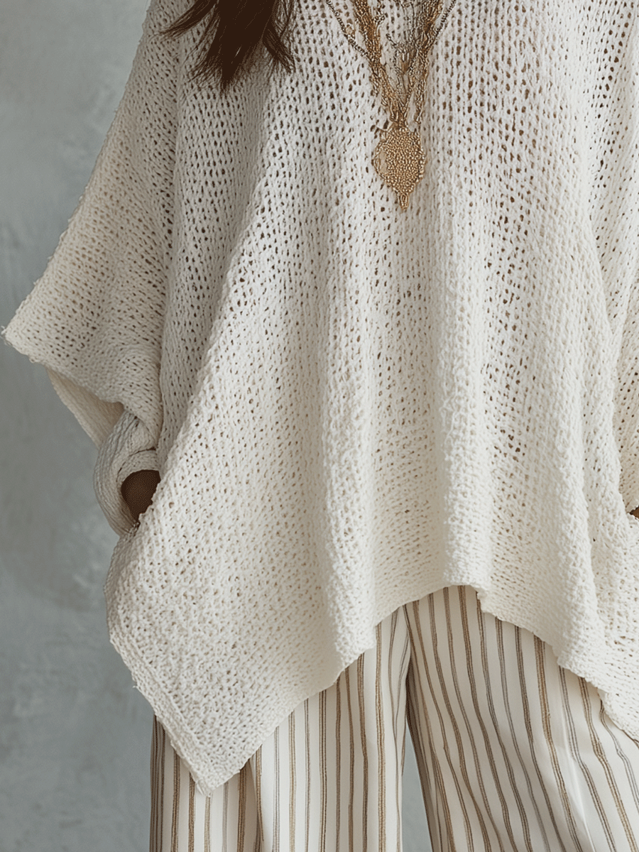Effortless Neutral Bohemian Pullover Knit Top